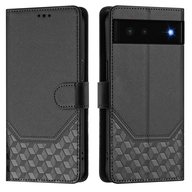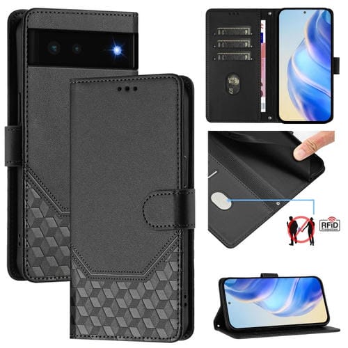 Funda de Cuero Rfid con Relieve en Panal para Google Pixel 6 (Negra)