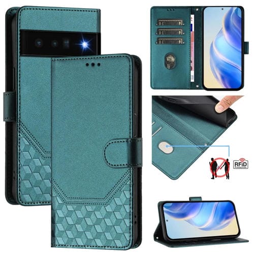 Funda de Cuero Rfid con Relieve en Panal para Google Pixel 6 Pro (Verde Pavo Real)