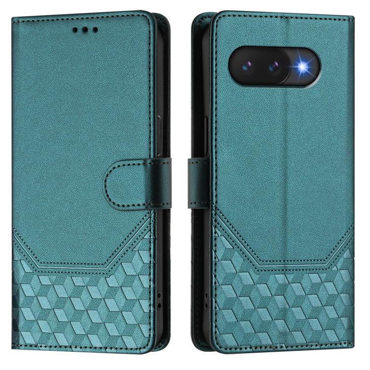Funda de Cuero Rfid con Relieve en Panal para Google Pixel 9A (Verde Pavo Real)