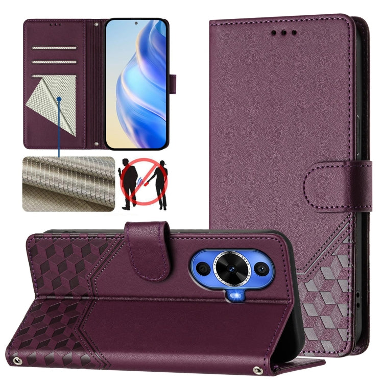 Funda de Cuero Rfid con Relieve en Panal para Huawei Nova 12S 4G (Violeta)