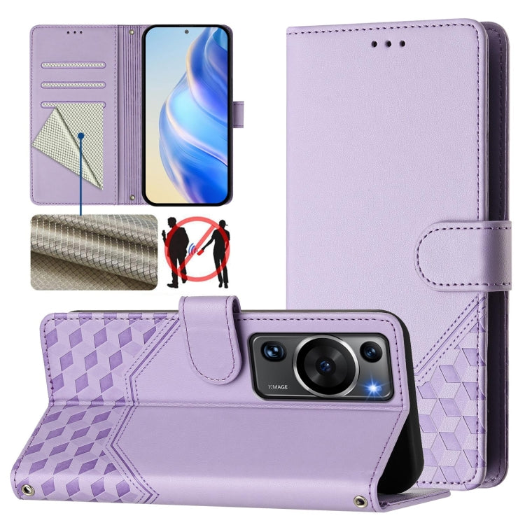 Funda de Cuero Rfid con Relieve en Panal para Huawei P60/P60 Pro (Morado Claro)