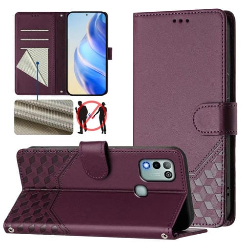 Funda de Cuero Rfid con Relieve en Panal para Infinix Hot 10 Play y Hot 11 Play (Violeta)