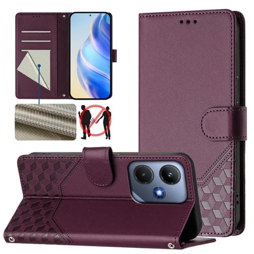 Funda de Cuero Rfid con Relieve en Panal para Infinix Hot 30I (Violeta)