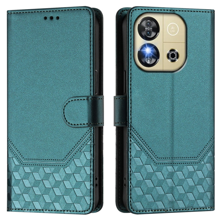 Funda de Cuero Rfid con Relieve en Panal para Oukitel C57S (Verde Pavo Real)