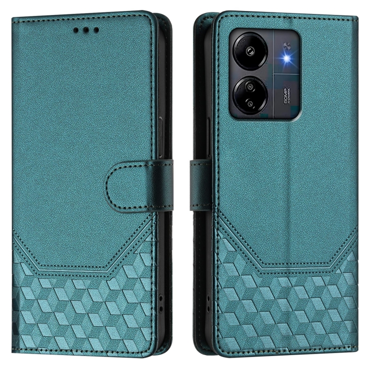 Funda de Cuero Rfid con Relieve En Panal para Redmi 13C 4G (Verde Pavo Real)
