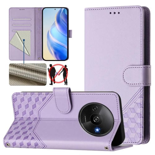 Funda de Cuero Rfid con Relieve En Panal para Redmi A3 4G Global/A3X 4G (Morado Claro)