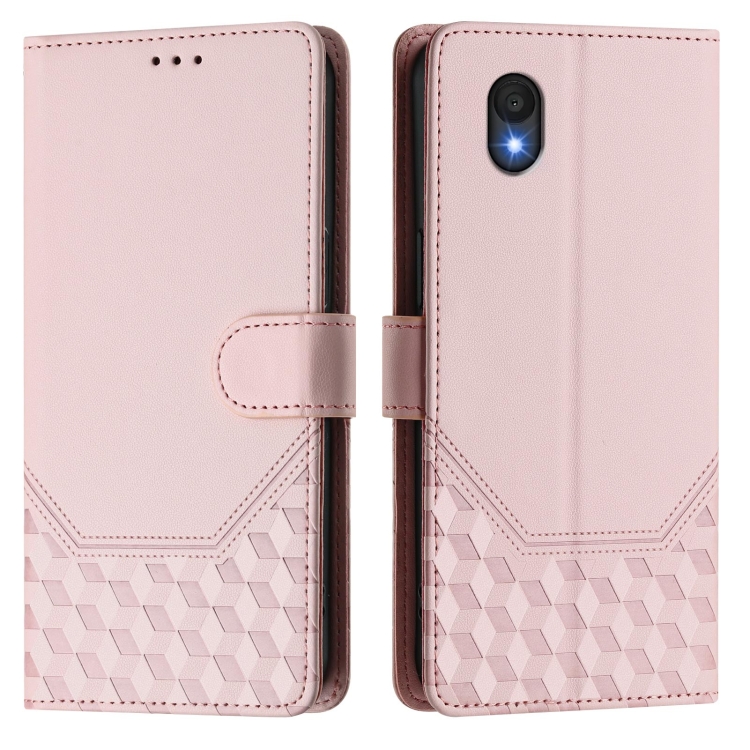 Funda de Cuero Rfid con Relieve en Panal para TCL 201 (Rosa)