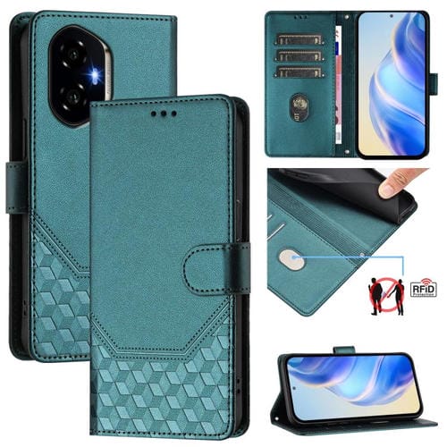 Funda de Cuero Rfid con Relieve en Panal para Honor 300 5G (Verde Pavo Real)
