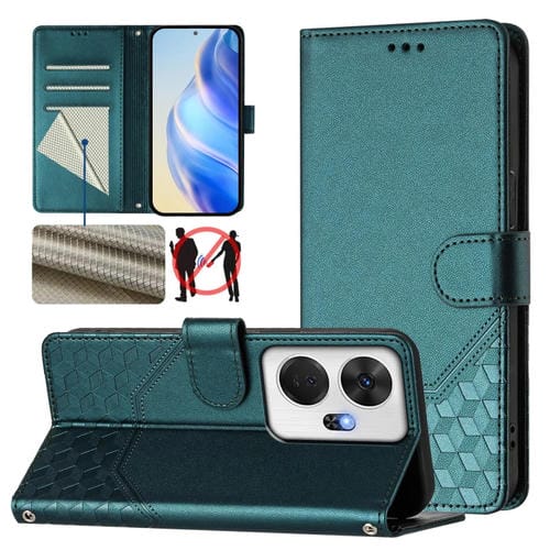 Funda de Cuero Rfid con Relieve en Panal para Teléfono Itel P55+ (Verde Pavo Real)