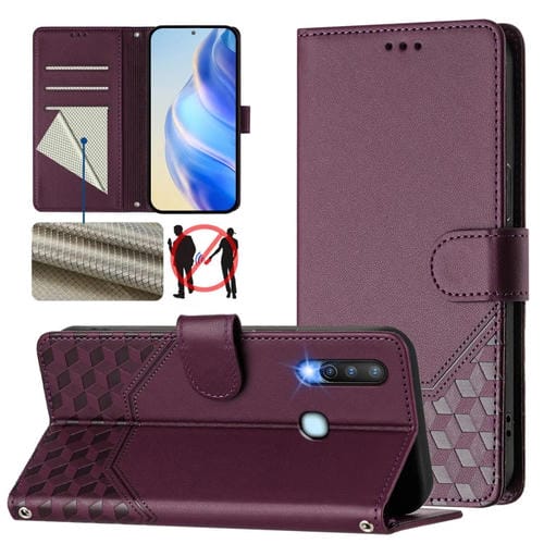 Funda de Cuero Rfid con Relieve En Panal para Vivo Y17/Y15/Y12/Y11 (Violeta)