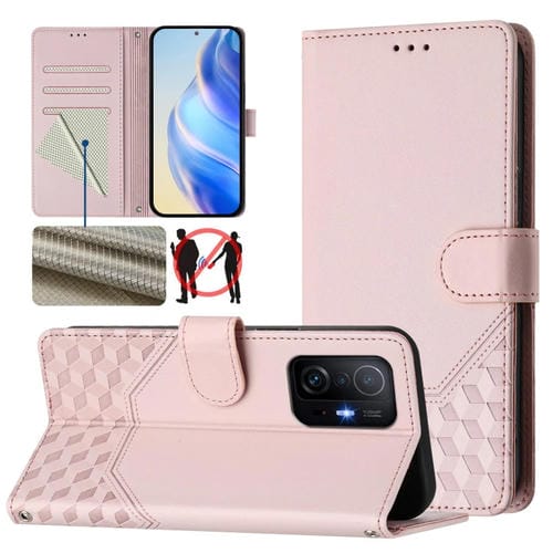 Funda de Cuero Rfid con Relieve En Panal para Xiaomi 11T/11T Pro (Rosa)