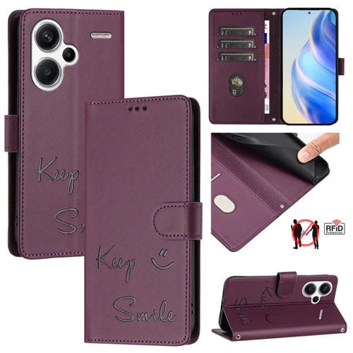 Funda de Cuero Rfid con Relieve Global Smile para Redmi Note 13 Pro+ (Violeta)
