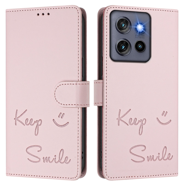 Funda de Cuero Rfid con Relieve Smile para Motorola Edge 50 Neo (Rosa)