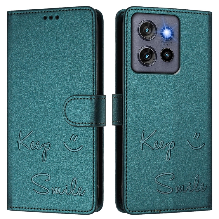 Funda de Cuero Rfid con Relieve Smile para Motorola Edge 50 Neo (Verde Pavo Real)