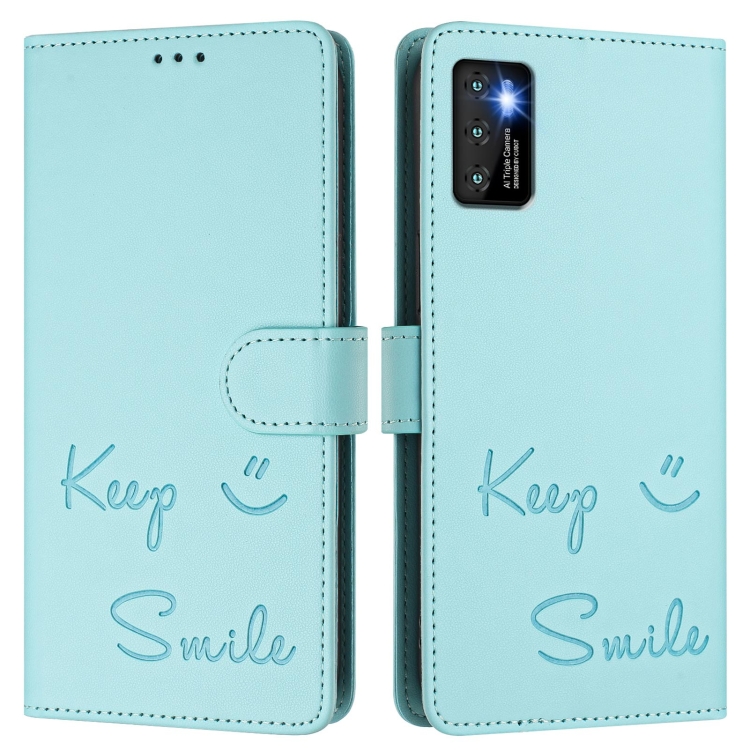 Funda de Cuero Rfid con Relieve Sonriente para Cubot P50 (Verde Menta)