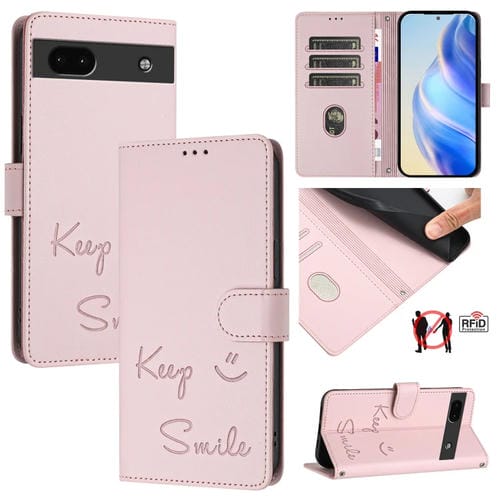 Funda de Cuero Rfid con Relieve Sonriente para Google Pixel 6A (Rosa)