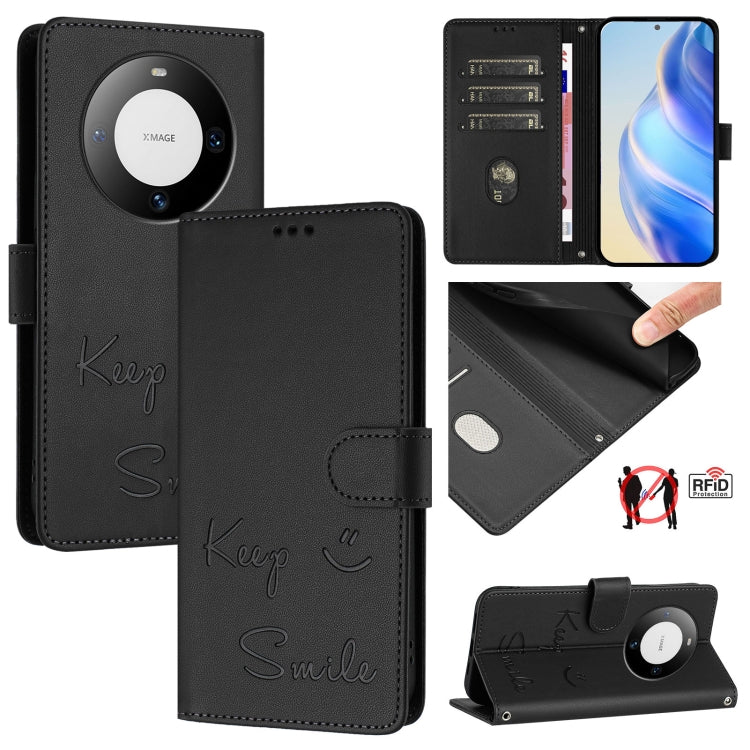Funda de Cuero Rfid con Relieve Sonriente para Huawei Mate 60 (Negra)
