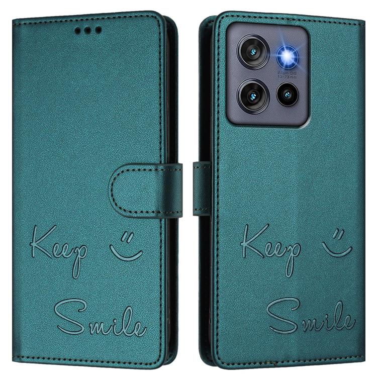 Funda de Cuero RFID con Relieve Sonriente para Motorola Moto G Stylus 5G (2025) (Verde Pavo Real)