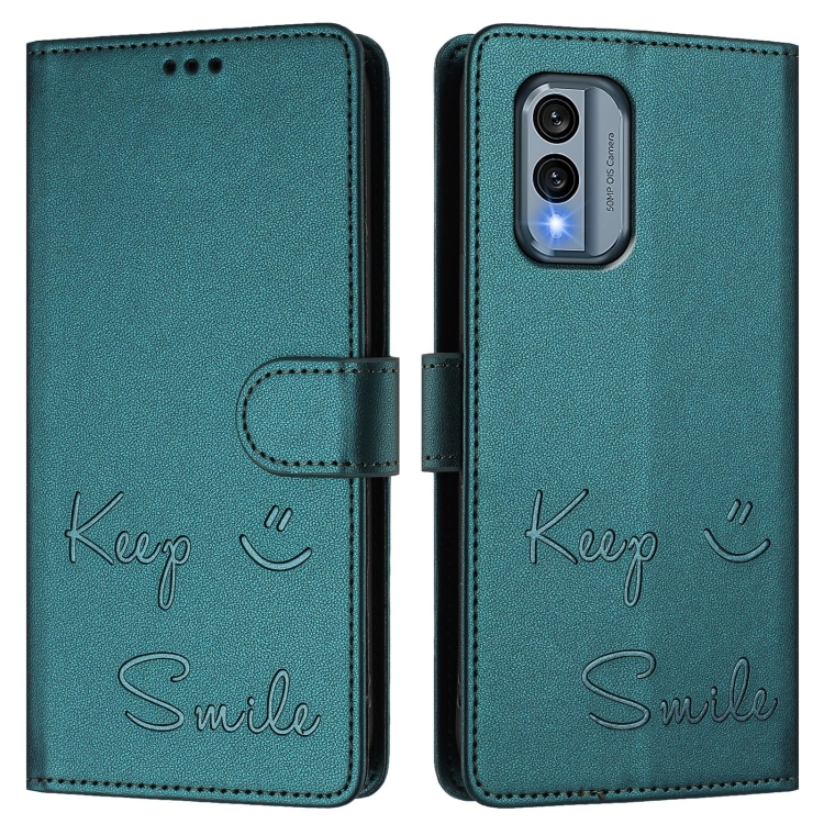 Funda de Cuero Rfid para Nokia X30 5G con Relieve Sonriente (Verde Pavo Real)