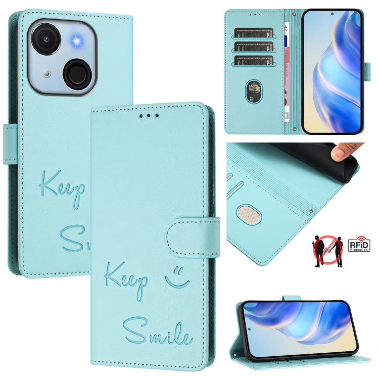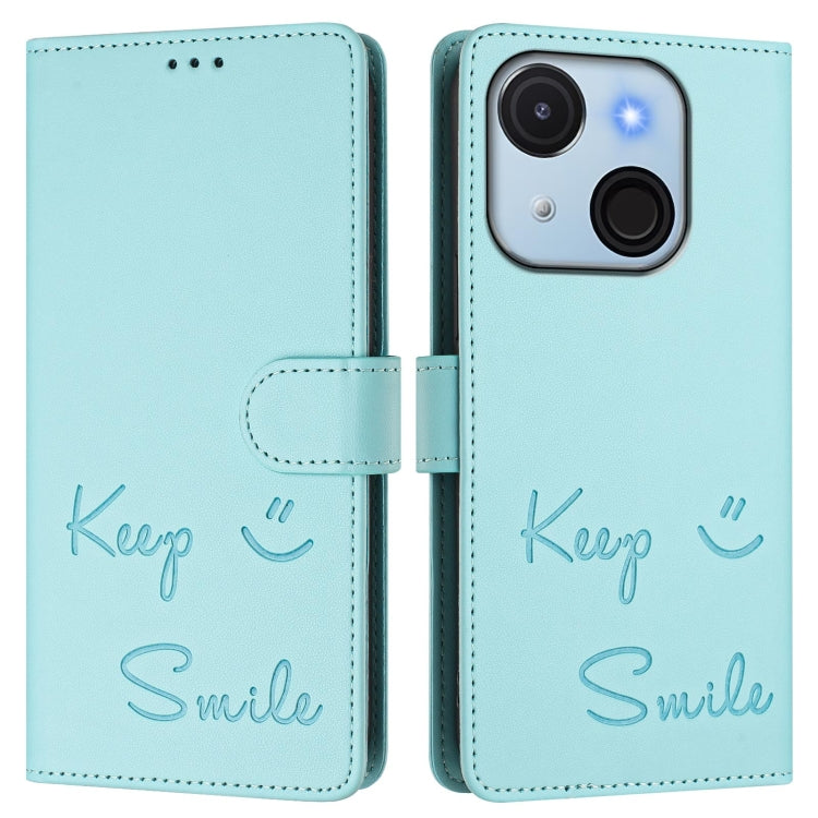 Funda de Cuero Rfid para Teléfono Itel A50C con Relieve Sonriente (Verde Menta)