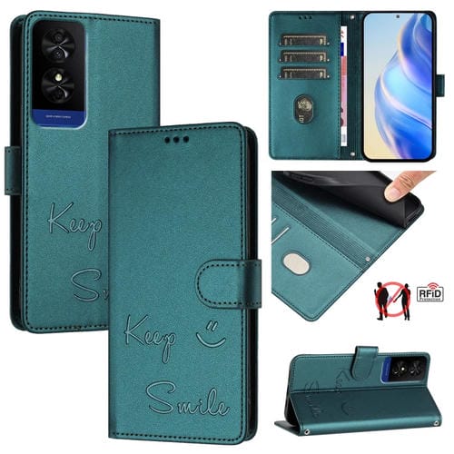 Funda de Cuero Rfid con Relieve Sonriente para TCL 50 5G (Verde Pavo Real)