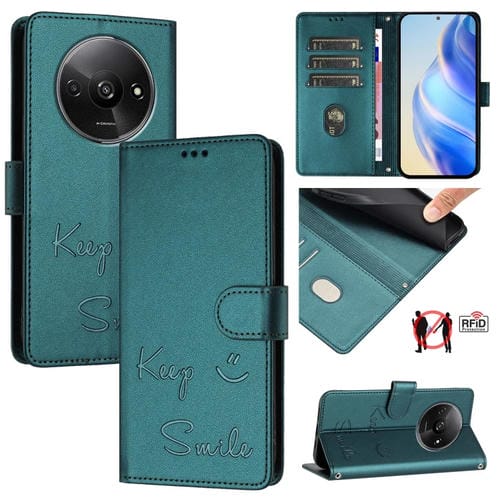 Funda de Cuero Rfid con Relieve Sonriente para Xiaomi Poco C61 (Verde Pavo Real)