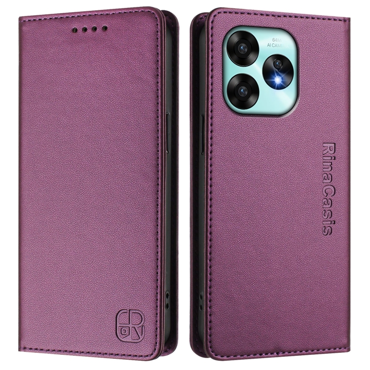 Funda de Cuero RFID con Succión Magnética y Doble Pliegue para Umidigi A15/A15C/A15T Rc01 (Violeta)
