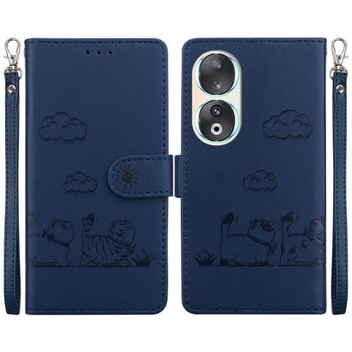 Funda de Cuero Rfid para Honor 90 con Diseño de Gatos (Azul)