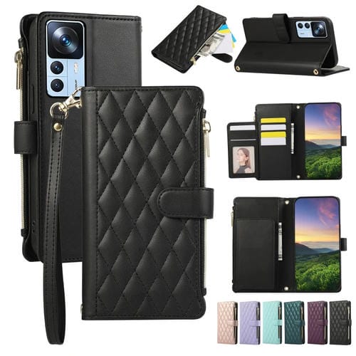 Funda de Cuero Tipo Billetera con Cremallera Rombal para Xiaomi 12T/12T Pro (Negra)