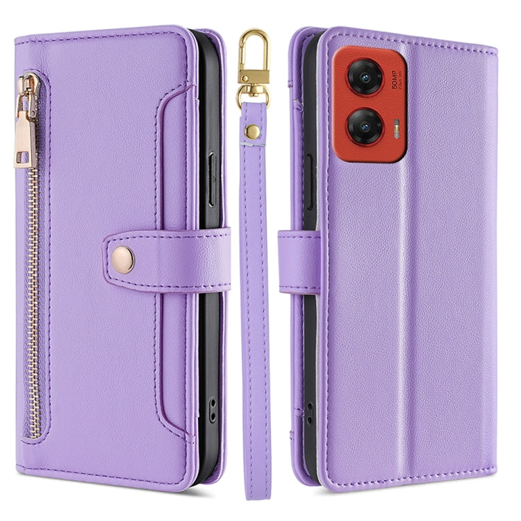 Funda de Cuero Tipo Billetera con Cremallera para Motorola Moto G Stylus 5G (2024) (Morado)