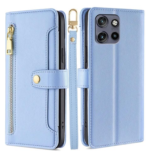 Funda de Cuero Tipo Billetera con Cremallera Diseño de Oveja para Motorola Edge 50 Neo 5G (Azul)