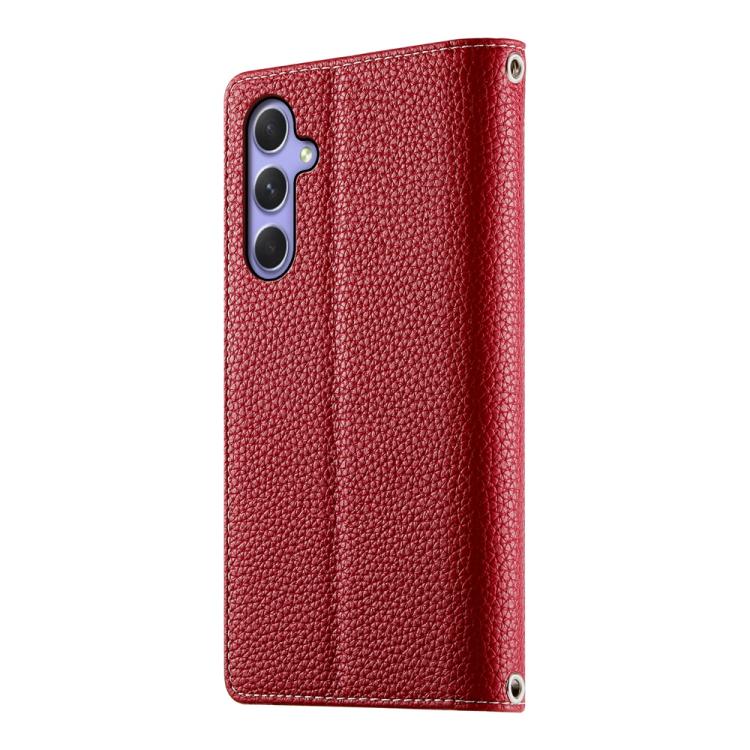 Funda de cuero tipo billetera con cremallera y múltiples tarjetas para Samsung Galaxy A55 5G, con costuras y correa corta (roja)