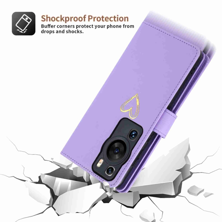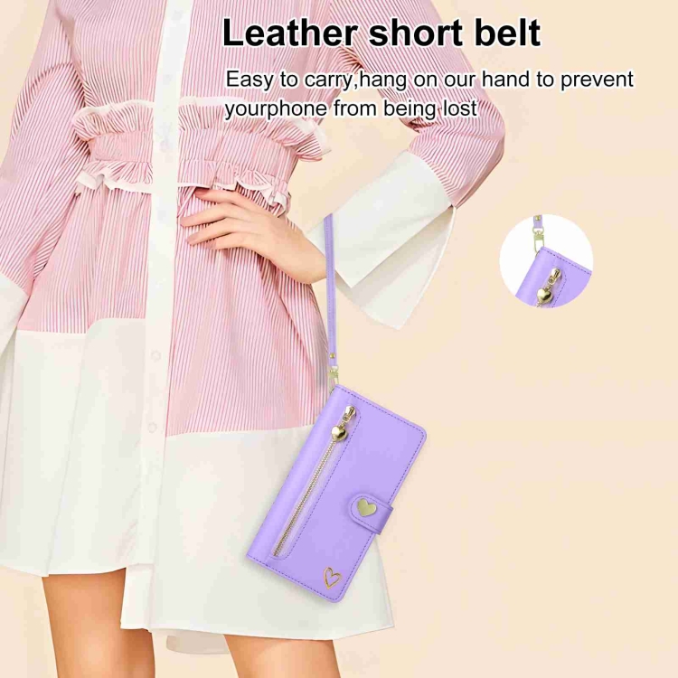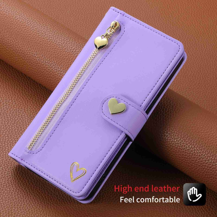 Funda Cuero Tipo Billetera Huawei P60 Pro Pola Love con Cremallera y Ranuras (Morado)