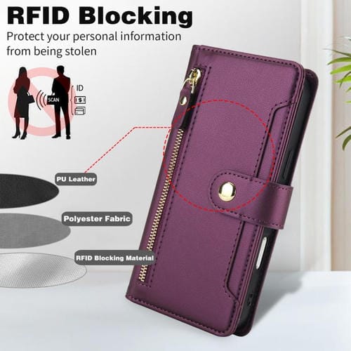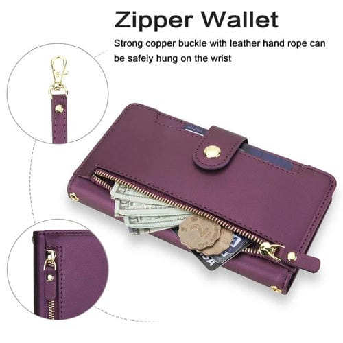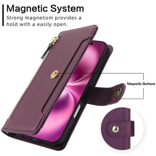Funda de cuero tipo billetera con cremallera y siete ranuras para tarjetas para iPhone 17 (morado oscuro)