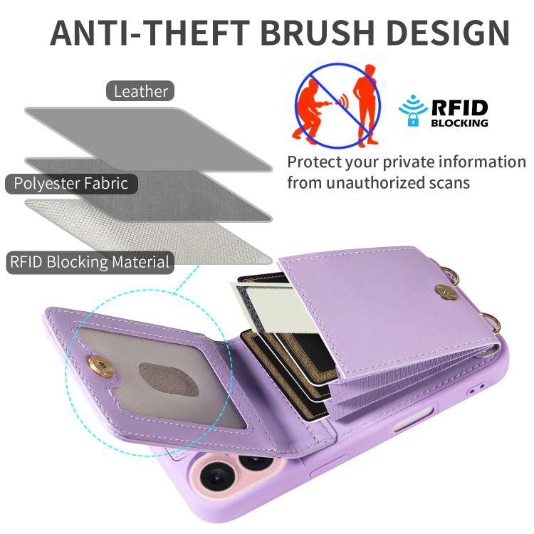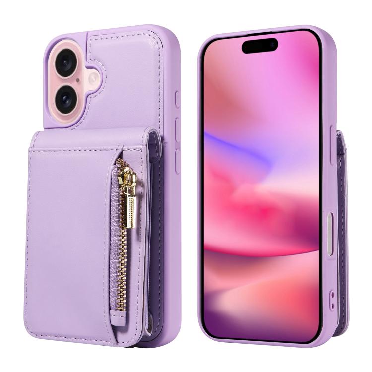 Funda de cuero tipo cartera con cremallera y cordón para iPhone 17 (morado)