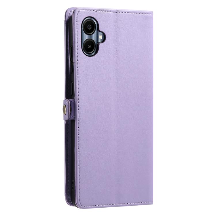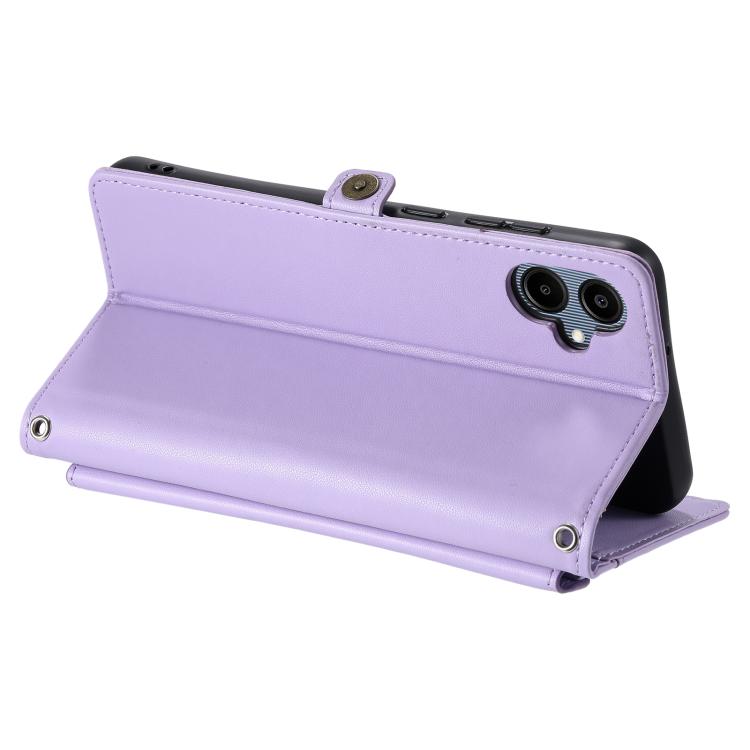 Funda de cuero tipo cartera con ranura para múltiples tarjetas y cordón para Samsung Galaxy A07 4G (morado)