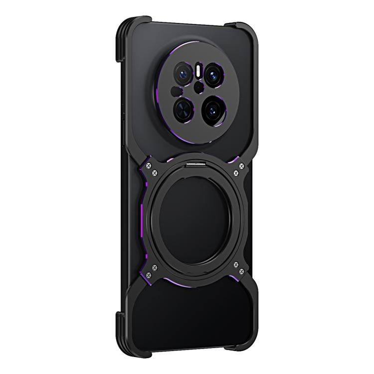 Funda de Metal con Soporte Magsafe y Brazo Mecánico para Huawei Mate 70 (Negro y Morado)