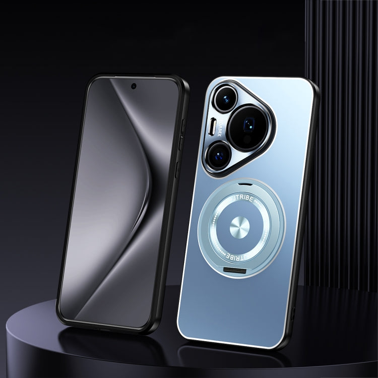 Funda de Metal Esmerilado con Soporte Giratorio para Huawei Pura 70 Pro (Azul)