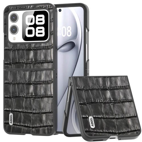 Funda de Piel Auténtica Abeel con Textura de Cocodrilo para Huawei Nova Flip (Negra)