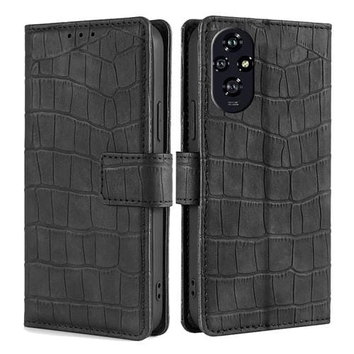 Funda de Piel para Honor 200 5G con Cierre Magnético y Diseño de Cocodrilo (Negra)