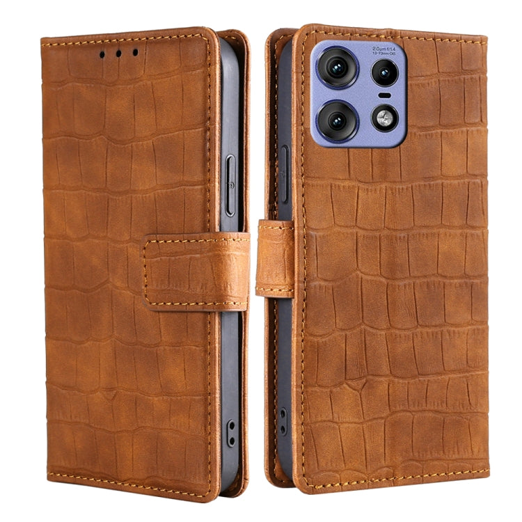 Funda de Piel con Cierre Magnético y Diseño de Cocodrilo para Motorola Edge 50 Pro 5G (Marrón)