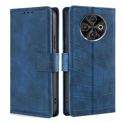 Funda de Piel para Tecno Spark 30C 4G con Cierre Magnético y Diseño de Cocodrilo (Azul)