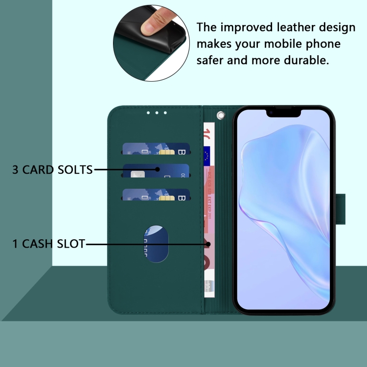 Funda de Piel con Cordón para iPhone 16 Pro Max con Tacto de Piel (Verde Oscuro)