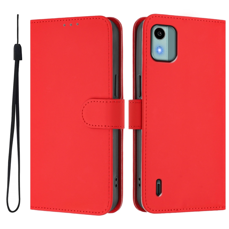 Funda de Piel con Cordón para Nokia C12 (Rojo) Color Liso y Tacto Agradable