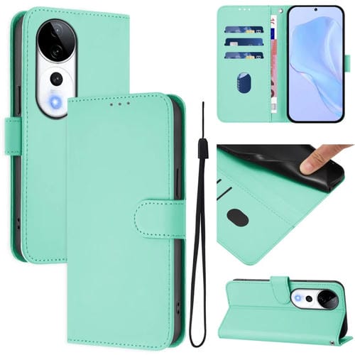 Funda de Piel con Cordón para Teléfono con Diseño de Piel Sintética de Color Liso para Vivo S19 Pro (Verde Menta)