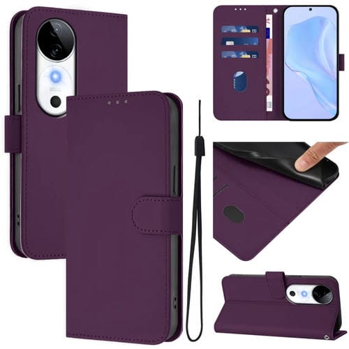 Funda de Piel con Cordón para Teléfono con Diseño de Piel Sintética de Color Liso para Vivo S19 (Violeta)