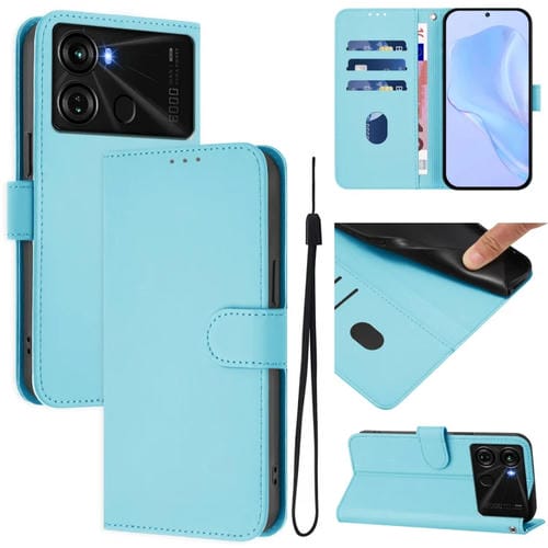 Funda de Piel con Cordón para Teléfono Itel P40 Skin Feel (Azul Cielo)