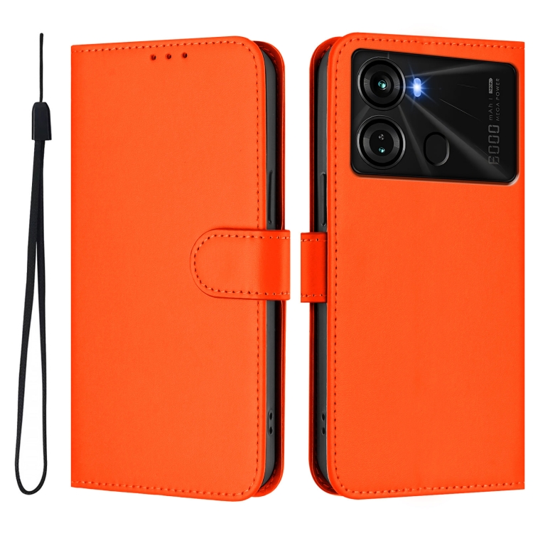 Funda de Piel con Cordón para Teléfono Itel P40 Skin Feel (Naranja)