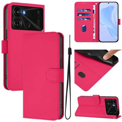 Funda de Piel con Cordón para Teléfono Itel P40 Skin Feel (Rosa Rojo)
