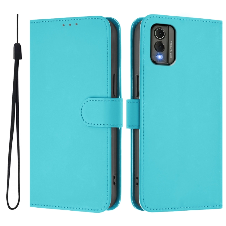 Funda de Piel con Cordón para Nokia C32 con Acabado Liso (Azul Lago)